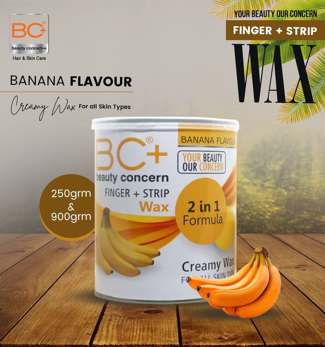 The BC+ Beauty Concern Finger+ Strip Wax Banana Extract delivers effective hair removal with the added benefits of skin nourishment and comfort. Enjoy a professional-quality waxing experience at home with the added luxury of banana-infused care.