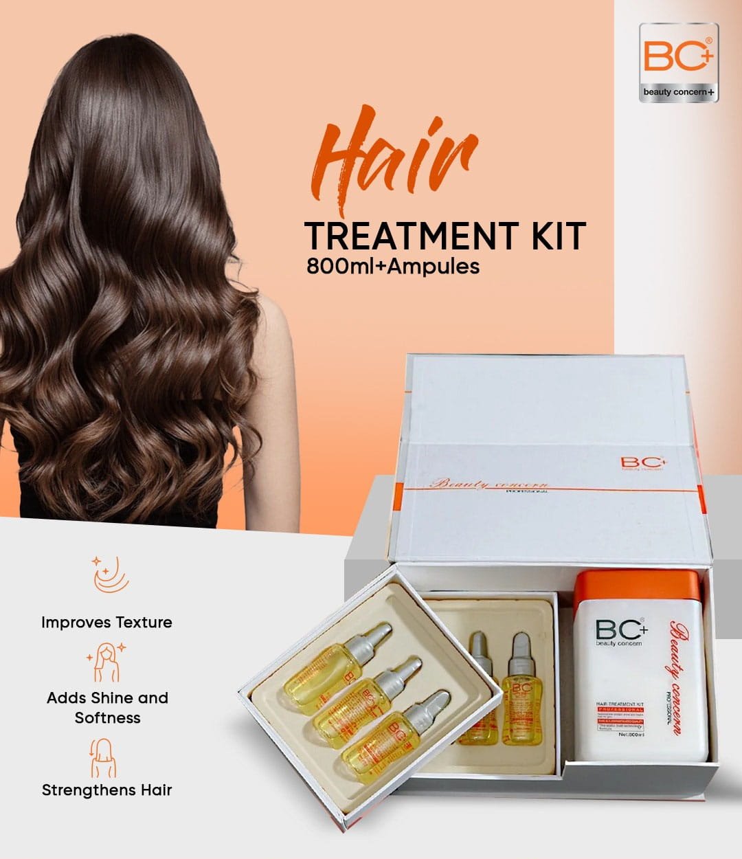 The BC+ Beauty Concern Hair Treatment Kit (800ml + Ampoules) offers a complete hair restoration experience, delivering salon-quality results in the comfort of your home. Replenish and repair your hair for stronger, smoother, and more resilient locks with this advanced treatment kit.