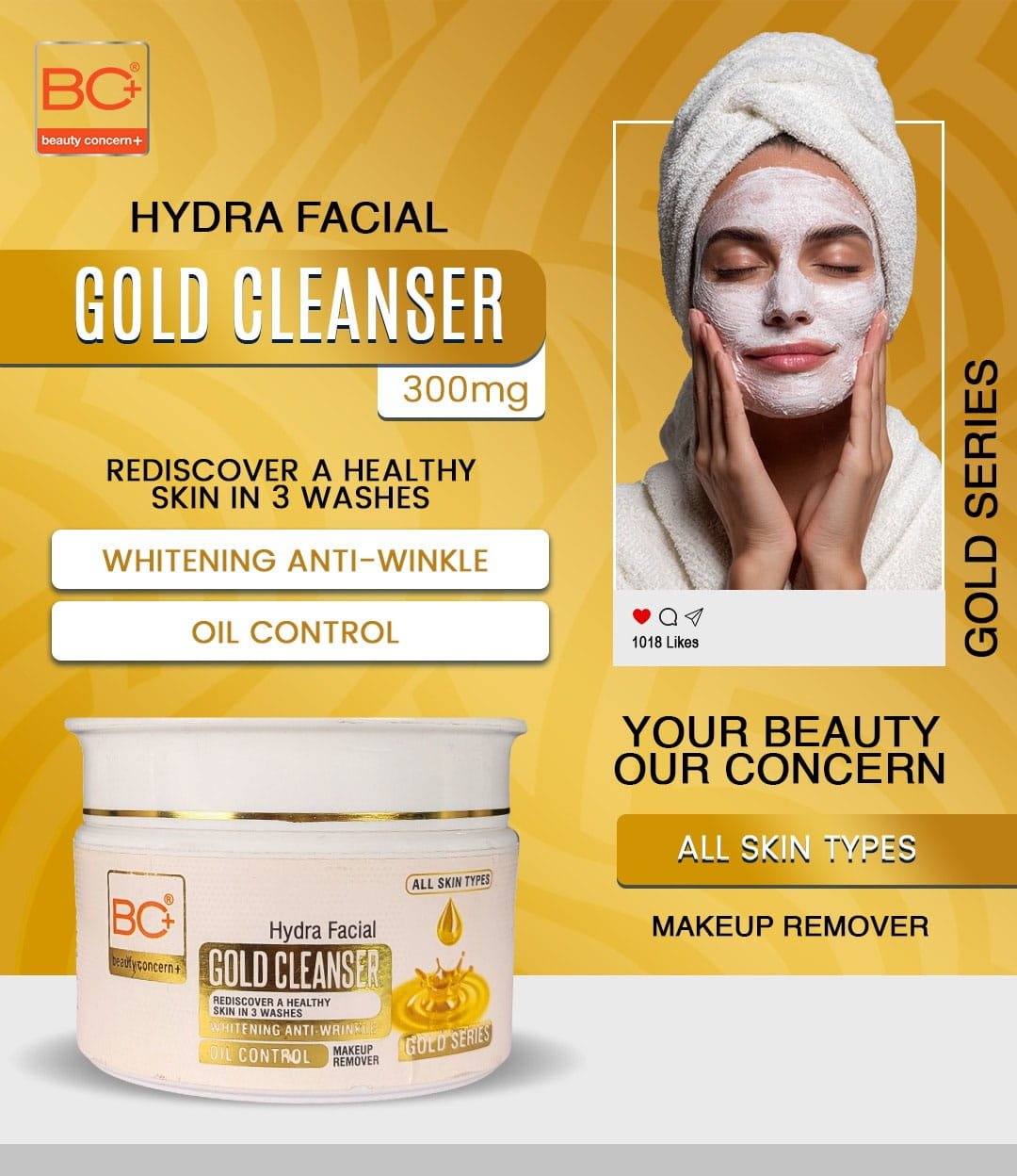 Experience the luxury of gold in your daily skincare routine with the BC+ Beauty Concern Hydra Facial Gold Cleanser. This advanced formula is designed to provide a deep yet gentle cleanse, effectively removing impurities, excess oil, and makeup without stripping the skin of its natural moisture. Infused with the revitalizing essence of gold and hydrating agents, this cleanser elevates your facial cleansing experience, leaving your skin feeling fresh, radiant, and silky smooth. Ideal for all skin types, it serves as the perfect first step to achieving a glowing and healthy complexion.
